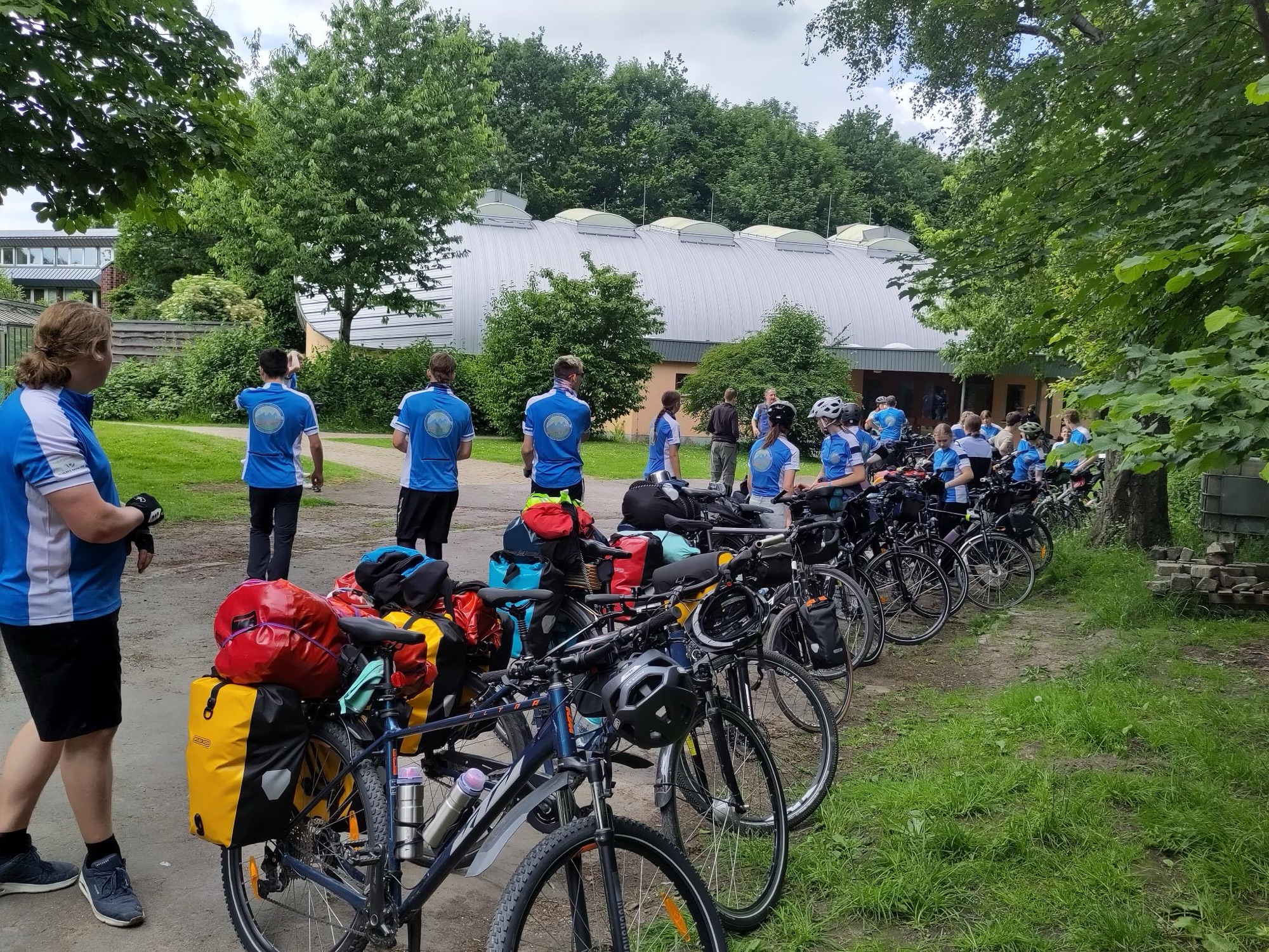 Heute war es endlich soweit. Die umfangreiche Planung und unsere verschiedensten Vorstellungen davon, wie es wohl ist den ganzen Tag auf dem Drahtesel zu verbringen, sollten heute und in den nächsten 4 Wochen zur Realität werden. Und so fuhren wir nach einer herzlichen Verabschiedung von Familie, Freunden und der Schulgemeinschaft, begleitet von Gesang und motivierendem Applaus gegen 10 Uhr morgens von Schloss Hamborn aus Richtung Westen.