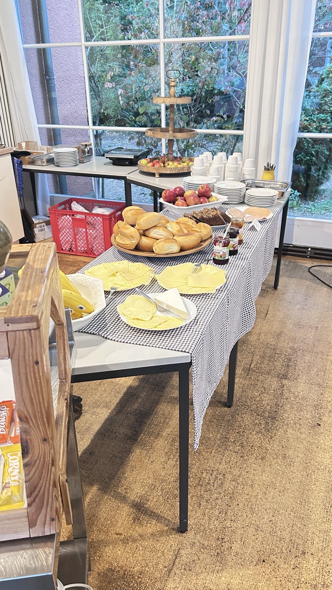 mit Brötchen, Marmelade, Käse und Toast.