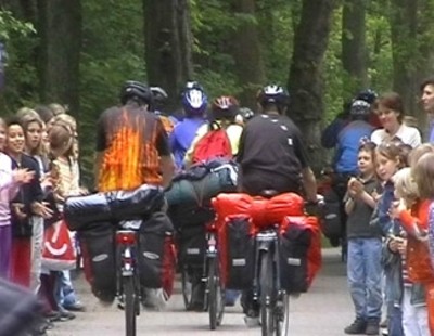 Am 10. Mai 2002 sind wir unter dem Beifall der gesamten Schulgemeinschaft, der Familien und Freunde, begleitet von Zeitung und Fernsehen direkt vom Schulhof abgefahren. Als 17-köpfige Gruppe sind wir ins Ungewisse aufgebrochen. Einige hatten seit Tagen bzw. Nächten nicht mehr richtig schlafen können, anderen wurde es immer flauer in der Magengegend bei dem Gedanken, ihren „Liebsten“ oder seine „Liebste“ so lange nicht mehr sehen zu können und mir wurde besonders die Schwere meiner Verantwortung bewusst. Die „gut gemeinten“ Worte unserer Skeptiker hallten in meinen Ohren: „Die adipöse O. kommt doch nicht einmal über den nächsten Hügel“ oder „in 2-3 Wochen sehen wir uns doch sowieso schon wieder.“ Sollte der erste Patzer, 100 Meter nach dem Start, bei dem eine Schülerin mit samt ihrem voll beladenen Rad der Länge nach hinfiel, diesen kritischen Stimmen recht geben?