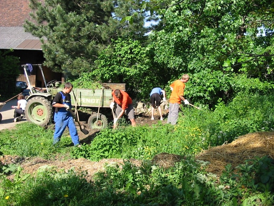 Im Verlauf der Strecke gab es längere Aufenthalte: So fand z.B. ein mehrtägiges Projekt auf einem Demeterhof in Uffenheim statt, wo wir gegen Kost und Logis verschiedene Arbeiten verrichteten. Die unmittelbare Notwendigkeit des Geldeinsparens durch die verrichtete Arbeit wurde den SchülerInnen deutlich. Weitere Erfahrungen konnten wir als Gäste in einer befreundeten Jugendhilfeeinrichtung in der schwäbischen Alb sammeln. Hier standen neben dem Entkernen einer Scheune das Bauen von Bumerangs und Klettern auf dem Programm.