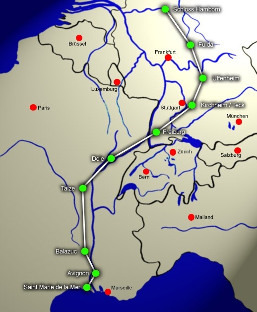 Bernd Langrock fuhr mit den 15 Jugendlichen seiner 10. Klasse der Rudolf-Steiner-Schule Schloss Hamborn mit dem Fahrrad in 9 Wochen (60 Tagen) über 2275 km von Hamborn bis an die französische Mittelmeerküste. Die 7 Mädchen und 8 Jungen der Klassen sind Schüler der in Schloss Hamborn angegliederten Schule für Erziehungshilfe.