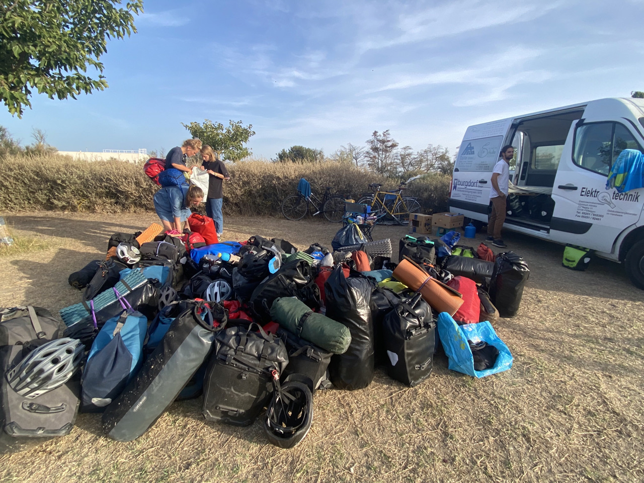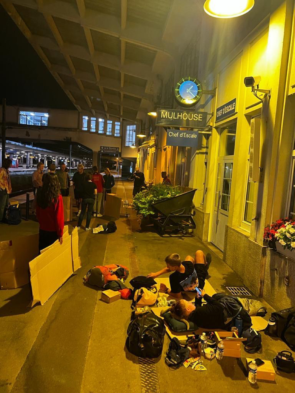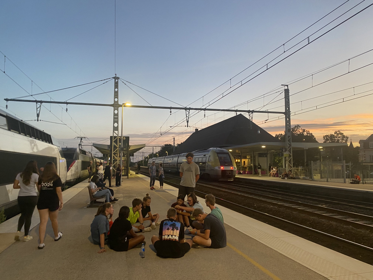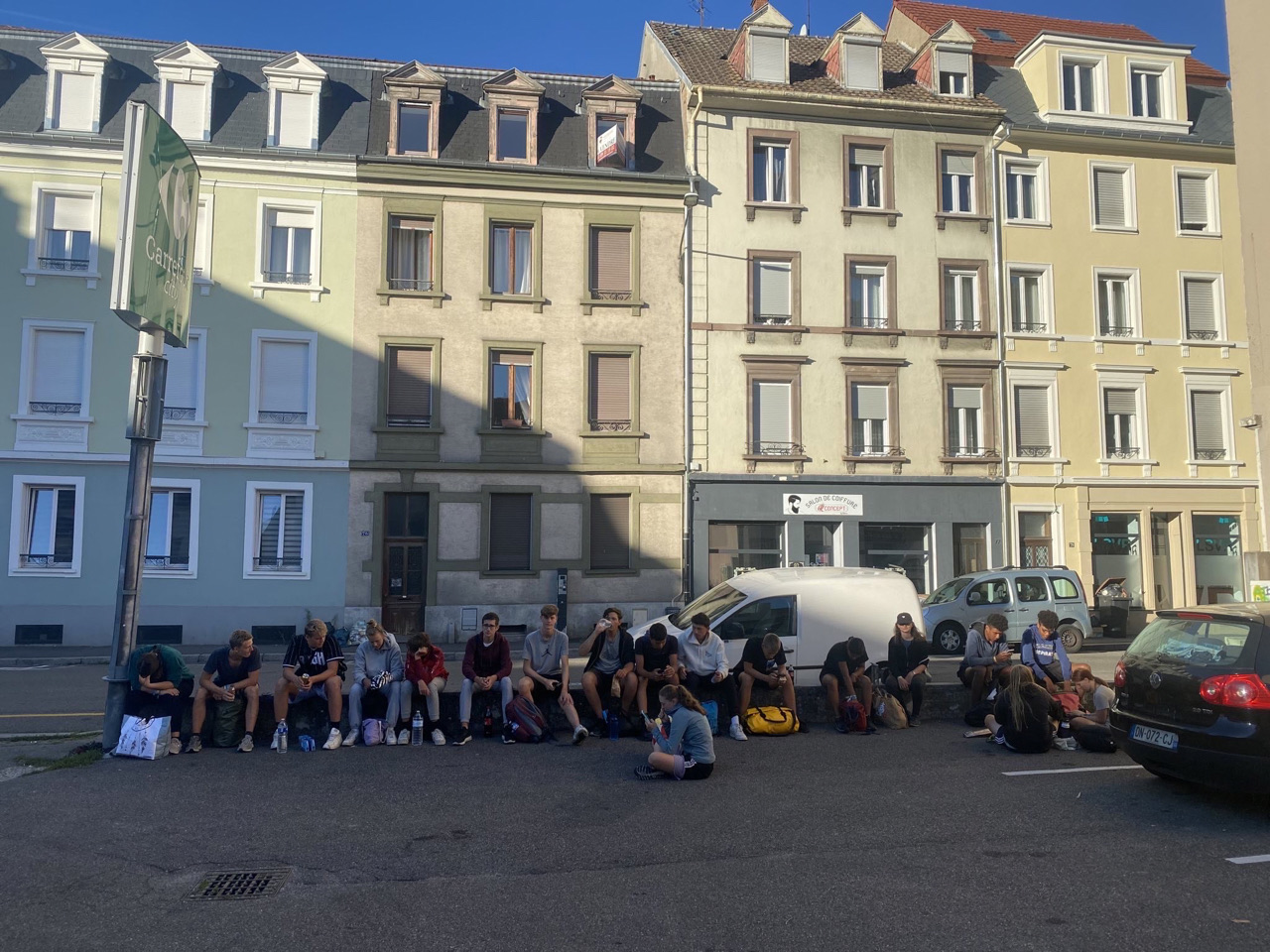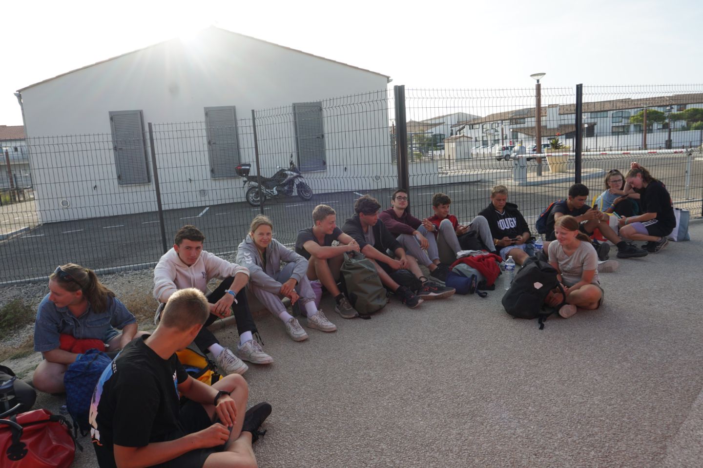 Tag 29 & 30: Der Tag unserer Abreise stand bevor. Zuerst sollte es um viertel vor 9 zum Bus gehen, dessen Haltestelle direkt vor unserem Campingplatz lag. Um diesen nicht zu verpassen, standen wir alle schon zwischen 6:00 und 7:00 Uhr auf und packten die letzten Dinge zusammen. Eine Truppe, bestehend aus 11 Personen, hatte sich noch am Vortag zum Strand aufgemacht, um dort die letzte Nacht zu verbringen. Diese mussten besonders darauf achten früh aufzustehen, da der direkte Eingang vom Campingplatz zum Strand so früh noch nicht geöffnet war und sie so noch 20 Minuten durchs Dorf laufen mussten. Aber dafür erwartete sie ein wunderschöner Sonnenaufgang, das Rauschen der Wellen und natürlich auch etwas Sand auf den Sachen am Morgen. Die Fahrräder waren schon am Tag zuvor in den Bulli von Moritz' Eltern verladen worden. Das Gepäck wurde dann am Morgen zusammengestellt. Mindestens eine Tasche musste ja auch noch mit in den Zug genommen werden. Mit der Aussicht darauf über Nacht mit dem Zug zu fahren, nahmen sich manche ihren Schlafsack mit, um es sich im Zug etwas bequemer machen zu können. Elie und Raphaela nahmen das Gepäck mit in ihren Bulli, während sich die Gruppe zum Bus aufmachte. So fuhren wir mit dem Bus etwa eine Stunde bis nach Arles. Dort hatten wir 2 Stunden Freizeit, bis wir uns wieder am Bahnhof treffen sollten. In der Zeit gingen viele noch einmal zum Supermarkt, um sich mit Proviant für die Fahrt einzudecken. Der Plan war um 12:09 von Arles etwa eine halbe Stunde nach Nîmes zu fahren. Dort hatten wir wieder zwei Stunden Umsteigezeit, in welcher sich die meisten, angeregt durch die 31°, eine Eisdiele suchten oder die Stadt etwas erkunden gingen. Nîmes bot wirklich viele schöne Plätze, welche sich lohnten erkundet zu werden. Weiter ging es um 14:25 Uhr. Es sollte eine längere Strecke werden, voraussichtlich sollten wir um 19:09 Uhr in Mulhouse ankommen. Ohne böse Vorahnungen stieg die Gruppe in den Zug. Doch schon nach etwa einer halben Stunde gab es irgendein Problem auf der Strecke, welches uns etwa um eine Stunde zurückfallen ließ. Noch war das kein großes Problem, da der Anschlusszug (von Mulhouse nach Basel) sehr regelmäßig fuhr und für den Zug danach (von Basel nach Hannover) eh wieder eine zweistündige Pause davor eingeplant war. Doch wir stoppten noch öfters oder fuhren nur sehr langsam voran, bis wir irgendwann komplett stehen blieben. Es gab einen Brand bei einem Zug vor uns auf der Strecke, welcher uns auf unbestimmte Zeit zum Stehen bringen sollte. So stiegen wir aus und machten es uns auf dem Bahnsteig gemütlich. Manche spielten Karten, andere unterhielten sich, vertraten sich die Beine und wieder andere legten sich einfach auf den Bahnsteigboden. Noch gab es Alternativen, zum Beispiel ein Zug, welcher um 23:00 Uhr aus Basel fahren würde. Es gab also noch Hoffnung rechtzeitig zum Empfang in Schloss Hamborn anzukommen. Doch die Zeit verging und wir kamen immer noch nicht voran. Um etwa 20:00 Uhr wurde uns gesagt, dass es frühestens in zwei Stunden weitergehen würde. So entwickelten ein paar die Idee kurz in einen Laden, 10 Minuten zu Fuß (1,3 km) zu gehen und Pizza für alle zu holen, um die Stimmung etwas zu heben und die leeren Bäuche zu füllen. Doch nach einiger Zeit wurde uns mitgeteilt, dass es jetzt weitergehen würde. Wir, als unvollständige Truppe, waren ziemlich verzweifelt. Vergeblich wurde versucht mehr Zeit auszuhandeln, doch der Zug konnte nicht noch länger aufgehalten werden. Mehr Zeit als zwei, drei Minuten bekamen wir nicht. Und so wurden die Einkäufer angerufen. Ihnen wurde gesagt, dass sie sofort alles stehen und liegen lassen und zurück kommen müssten. Die Gruppe meinte, dass sie 10 Minuten für den Weg brauchen würden. Doch so viel Zeit hatten sie nicht, also hieß es: Laufen! Der Einkauf wurde stehen gelassen und das Geld von den bereits bestellten Pizzen zurückgenommen. So legte die kleine Gruppe den Sprint ihres Lebens ein und rannte die 1,3 Kilometer innerhalb von 3 Minuten. Als die Truppe durch die Zugtüren sprangen wurden sie jubelnd von der extrem erleichterten Gruppe empfangen. Ein paar vielen sich vor Erleichterung unter Tränen in die Arme. So fuhren wir mit dem Zug weiter bis nach Mulhouse, wo wir um halb zwölf endlich ausstiegen. Uns sollte ein Hotel von der Bahn gestellt werden, schließlich waren wir nicht Schuld an der Verspätung. Für alle war es frustrierend, wir würden nicht am nächsten Morgen in Paderborn ankommen und nicht mit dem Fahrrad in den Empfang in Schloss Hamborn einfahren. Doch die Situation war nicht zu ändern. Im Bahnhof fanden wir einen Aufenthaltsraum direkt an den Gleisen, in welchen sich der Großteil der Klasse verzog. Erst dachten wir, wir müssten nur für eine halbe oder eine Stunde dort bleiben. Aber nein, die Leute von der Bahn schafften es erst einmal nicht ein Hotel für uns, eine so große Gruppe, zu finden. Andere Passagiere bekamen hingegen schneller ein Hotel, da sie einzeln oder in kleinen Gruppen unterwegs waren. Irgendwann begannen sich einige Schüler die Pappe (welche wir am Bahnhof in großen Mengen fanden) als Liegeuntergrund im Aufenthaltsraum zu nehmen. Nun hatten natürlich die den Vorteil, welche sich den Schlafsack eingepackt hatten. Herr Langrock kam irgendwann rein und meinte, dass er nicht wüsste, ob und wann wir in ein Hotel kommen würden. Also richteten wir uns darauf ein in diesem Raum zu nächtigen. Alles andere als toll. Kalter Boden, einige hatten keinen Schlafsack dabei, der Raum war die ganze Zeit voll belichtet, es gab nicht viel Platz und außerdem gab es keine Toilette mehr. Doch was sollten wir tun? Also legten sich immer mehr schlafen oder versuchten dies zumindest. Bis wir um etwa 2 Uhr morgens aufgeweckt wurden. Es gab ein Hotel für uns! Nach und nach wurden wir in Vierergruppen von einzelnen Taxis aufgepickt und zum Hotel gefahren. Zwischen 2-3 Uhr kamen dann alle in ihren Hotelzimmern an. Es war (für unsere Verhältn