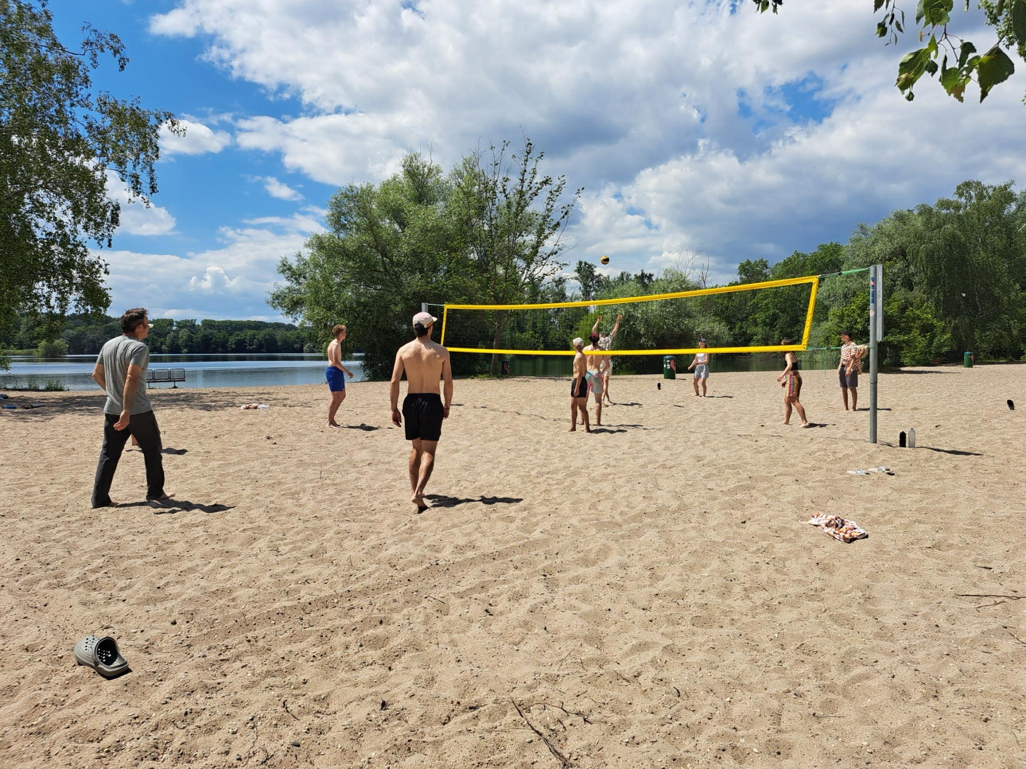Im Laufe des Vormittags sind wir in einer kleinen Truppe zu einem Volleyballplatz auf der anderen Seite des Sees gefahren. Dort haben wir stundenlang Volleyball gespielt und die Teamer haben uns während dessen wertvolle Tipps und die Regeln erklärt. Dadurch entstand ein schönerer Spielfluss.