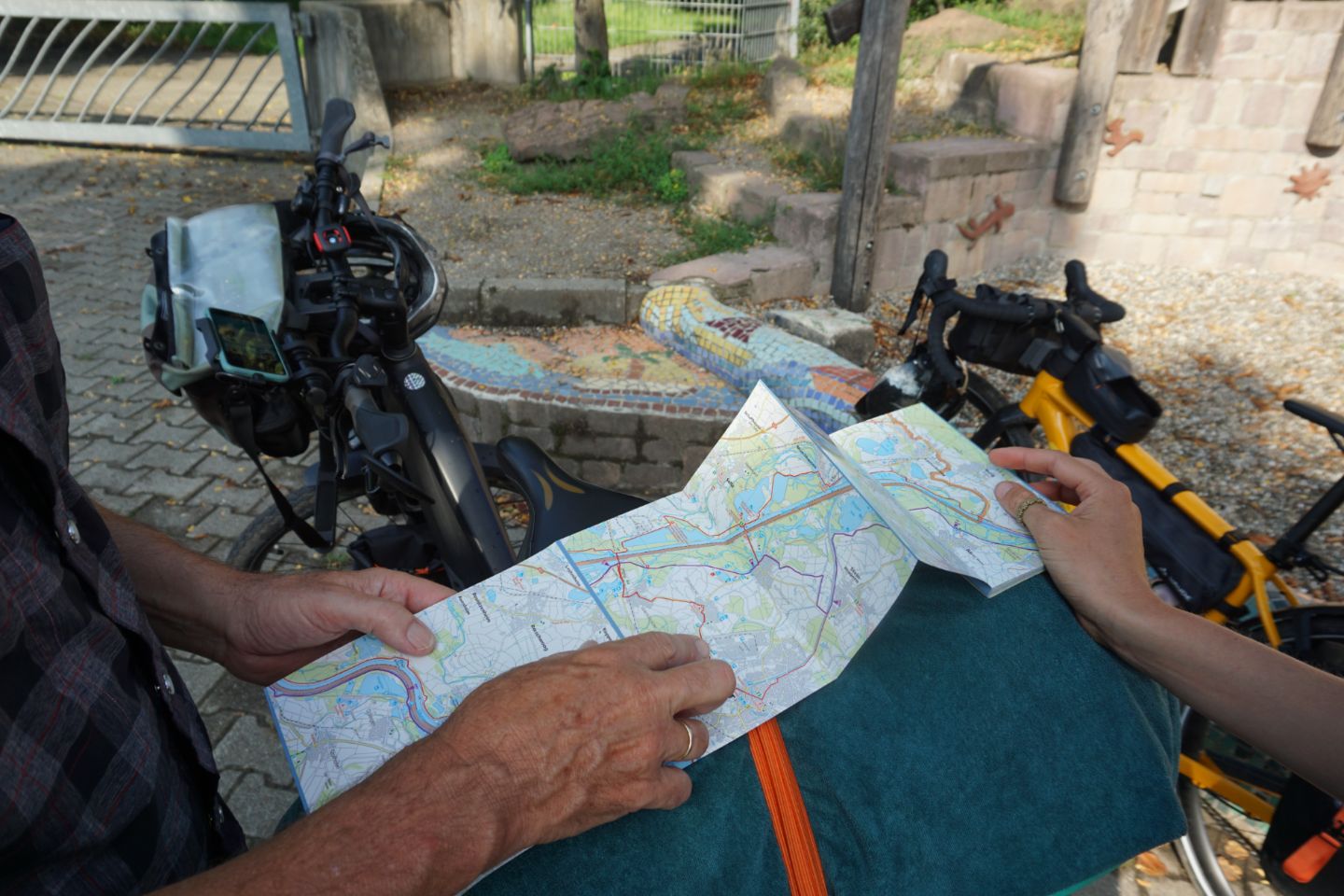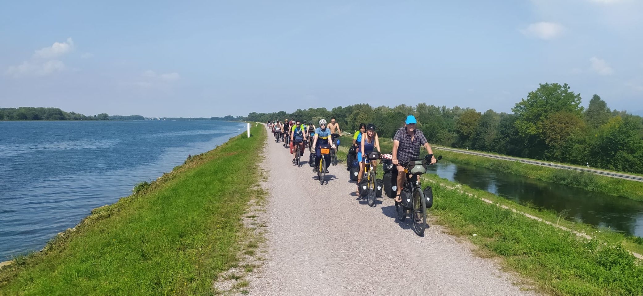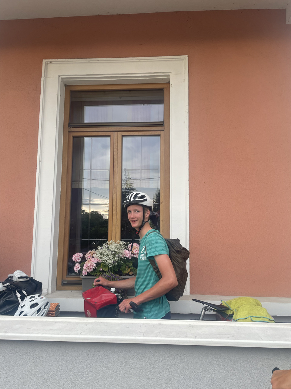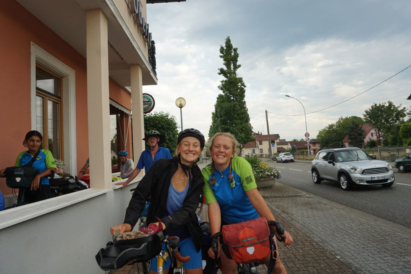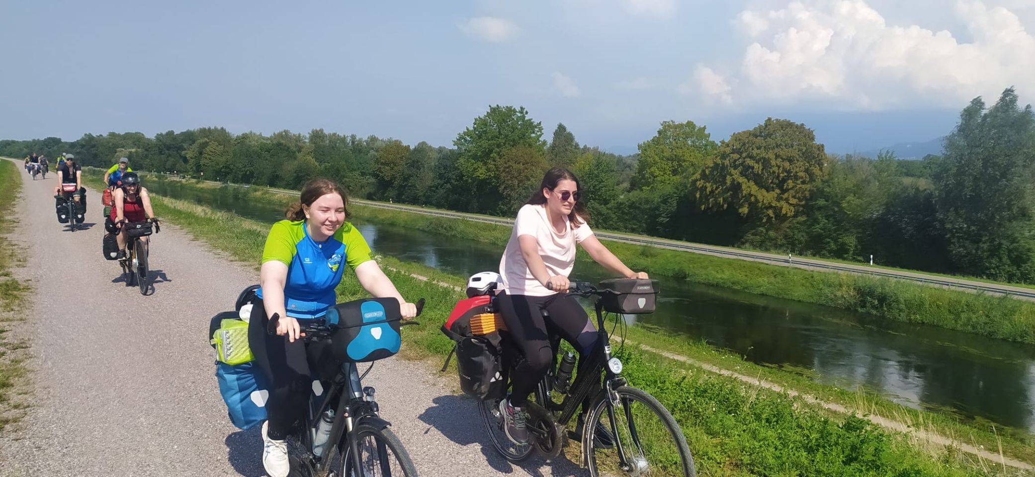 Tag 10: Heute stand eine besondere Fahrt an: Wir fuhren über die Grenze nach Frankreich! Da es mehrere Krankheitsfälle gab, sind ein paar Schülerinnen die ersten 30 km mit dem Zug gefahren. Für die anderen ging es weiter am Rhein entlang. Mittags trafen alle zusammen und wir machten eine schöne und vor allem erfrischende Pause an einem naheliegenden Badesee. Danach ging weiter durch die Mittagshitze. Als wir endlich auf der Fähre nach Frankreich standen, bekamen wir als Willkommens-gruß einen kleinen Regenschauer. Nach etwa 90 km sind wir auch schon an unserem Ziel angekommen. Ein abgelegener „Campingplatz“ kurz vor Straßburg. Das Besondere: Es war ein Privatgrundstück eines netten Herren, den wir überreden konnten uns für eine Nacht aufzunehmen. Es gab zwar nur eine Outdoordusche und eine Toilette für alle, aber dafür einen schönen Platz zum Zelten. Abends ist ein Teil der Gruppe nochmal losgezogen, um sich Straßburg bei Nacht anzuschauen. Das war ein schöner Ausflug. Wir freuen uns, Deutschland jetzt hinter uns zu lassen und sind gespannt, was uns in Frankreich erwarten wird.