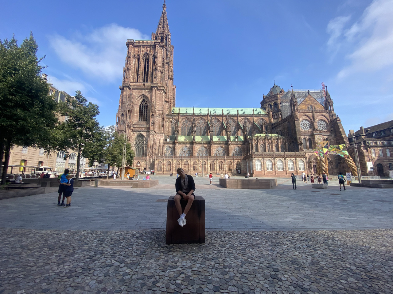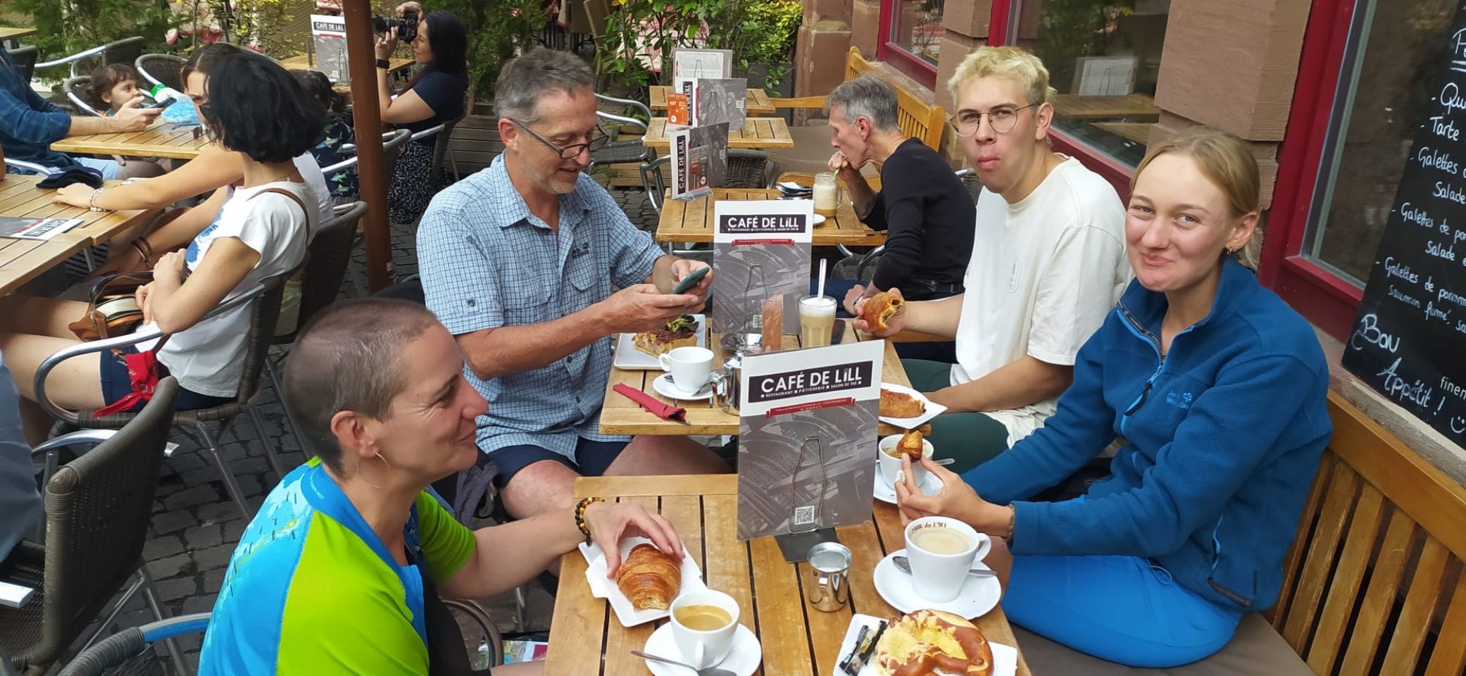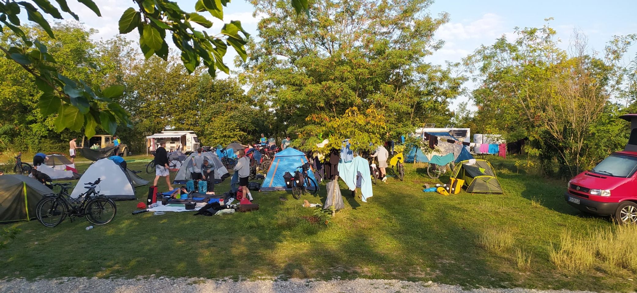Tag 11: Unser heutiges Ziel war Neuf-Brisach. Wir machten eine ausgiebige Frühstückspause im Stadtzentrum am Dom in Straßburg. Danach ging es los: den ganzen Tag schnurgeradeaus den Rhein-Rhone-Kanal entlang. Die große Hitze machte vielen zu schaffen und so ging es eher gemächlich voran. Die schöne, verkehrsarme Umgebung machte es möglich seinen Gedanken nachzuhängen und ein bisschen "in den flow" zu kommen. Zwei Mitschüler*innen wurden unterwegs von Frau Majewski mit dem Begleitfahrzeug aufgesammelt, da sie krank bzw. verletzt waren. Wie gut, dass wir so eine tolle Unterstützerin dabei haben! Die Mittagspause verbrachten wir auf einer Wiese mit einem großen Bienenstock in der Nähe. Nun haben wir unsere Zelte, Hängematten und Planen an einem großen Campingplatz in Neuf-Brisach aufgebaut und werden gleich das Abendessen kochen.